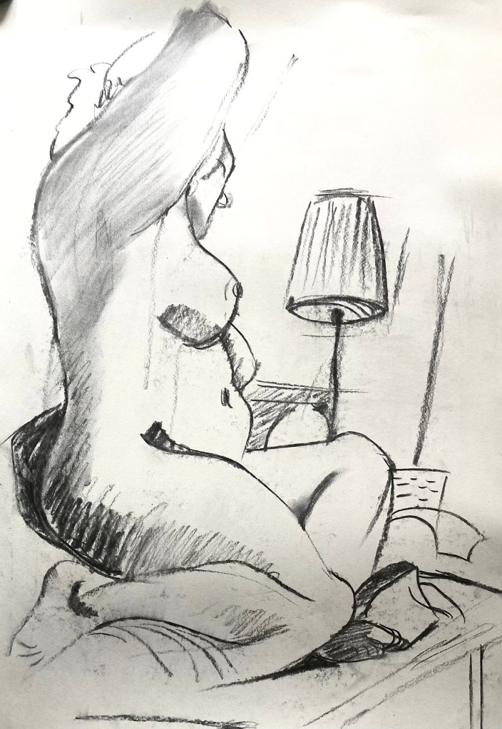 ‘Hug#2’’ 70 x 100cm, 2021 Charcoal and oil wash on Fabriano paper‘Hug#1’ 70 x 100cm, 2020. Charcoal and oil wash on Fabriano paper‘Wrapped and Twisted’, 2021. Charcoal on Fabriano paper, 100 x 70cm‘Wrapped ‘, 2021. Charcoal on Fabriano paper, 100 x 70cmBig Twist charcoal on Fabriano paper, 100 x 70cm‘Diagonal Clutch’ charcoal on Fabriano paper, 100 x 70cm‘Life Drawing with t bag #1’ ‘Life Drawing with t bag #2’ , 100 x 70cm , 2024, charcoal on paperLife Drawing with t bag #3, 2024, charcoal on paper 100 X 70cm‘Nude With Necklace’ 2024‘Nude & Lampshade’, 2024‘Face Down Nude’, 2024‘Leaning #2’, 2024‘Leaning’, 2024