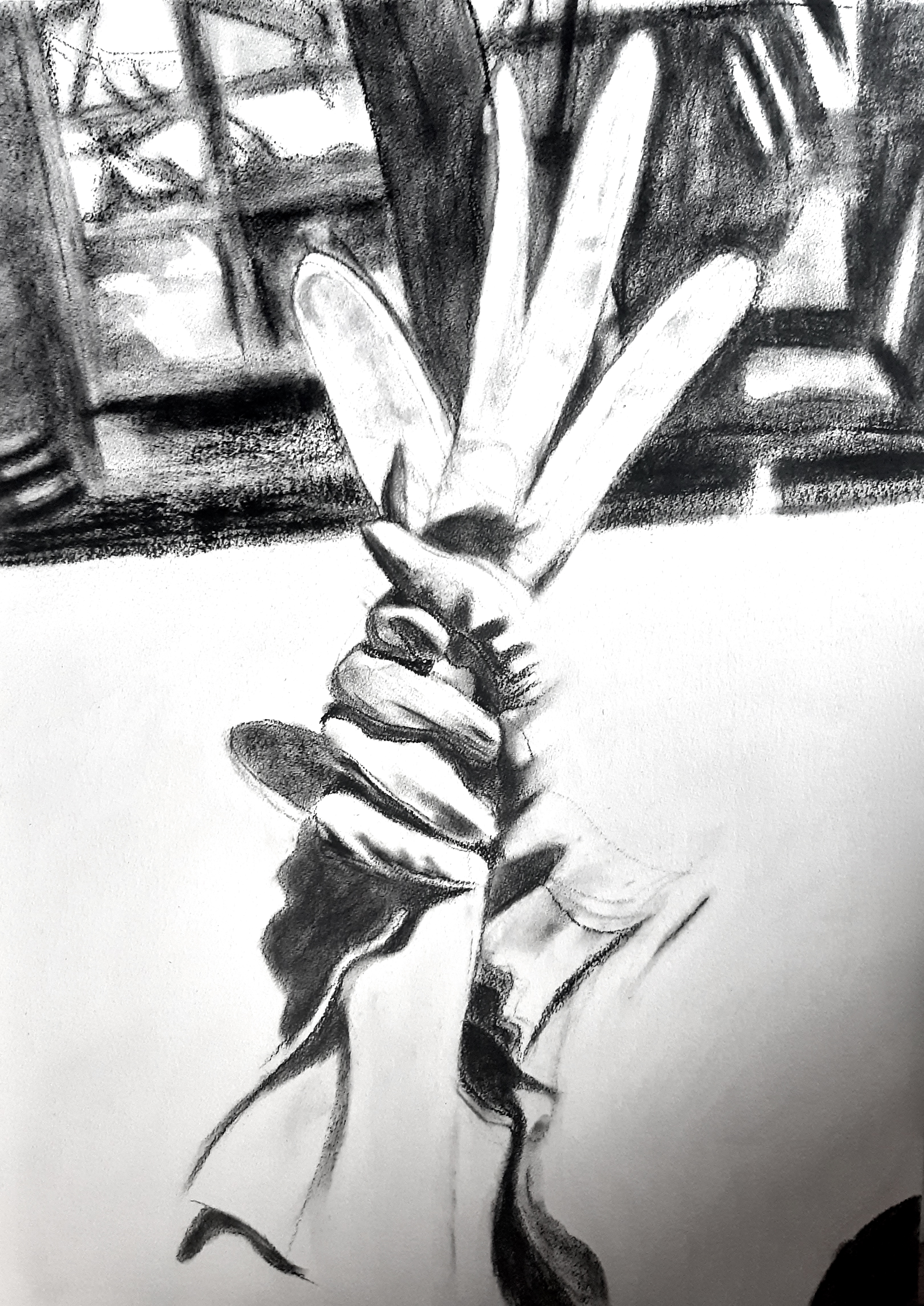 Previous Image Next Image Charcoal ‘Hand in Glove in Hand’ ‘Hand In Glove In Hand’ 2022, Oil and charcoal on 75cm x 55cm 425gsm watercolour paper. ‘Hand In Glove In Hand’ 2022, Oil and charcoal on 75cm x 55cm 425gsm watercolour paper. Like Loading...