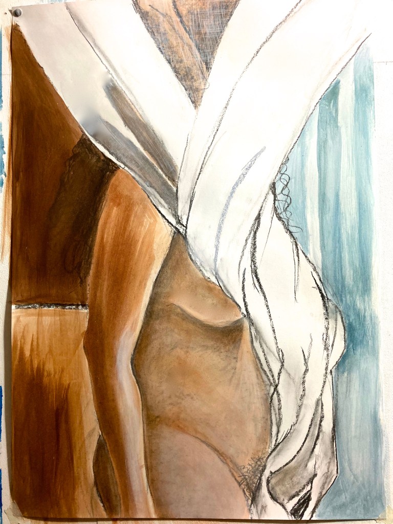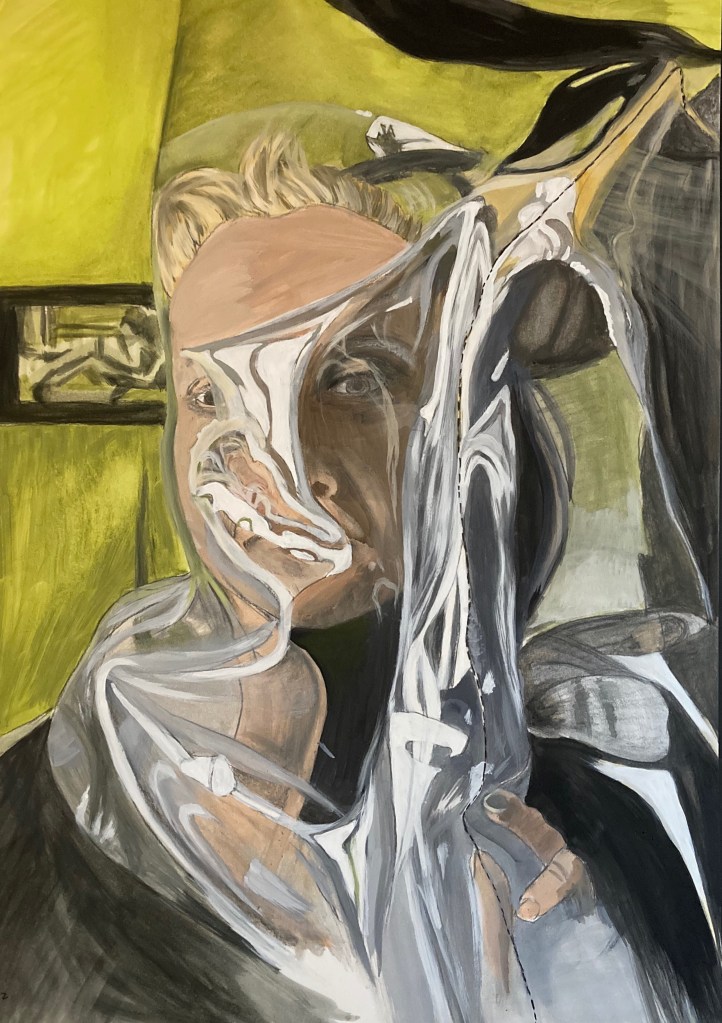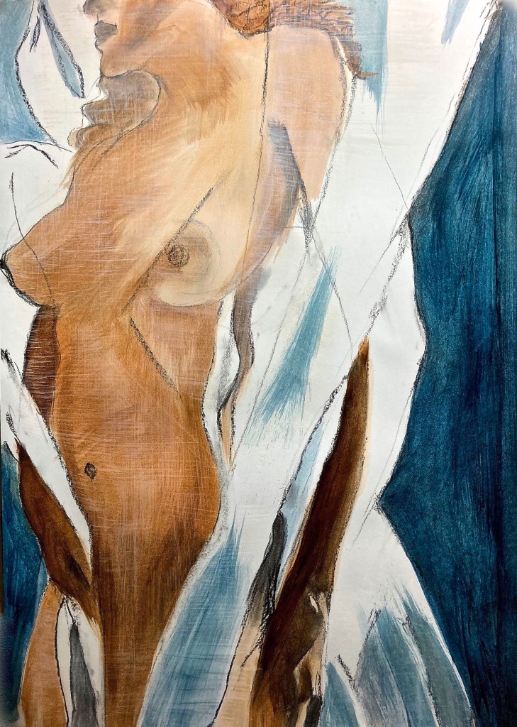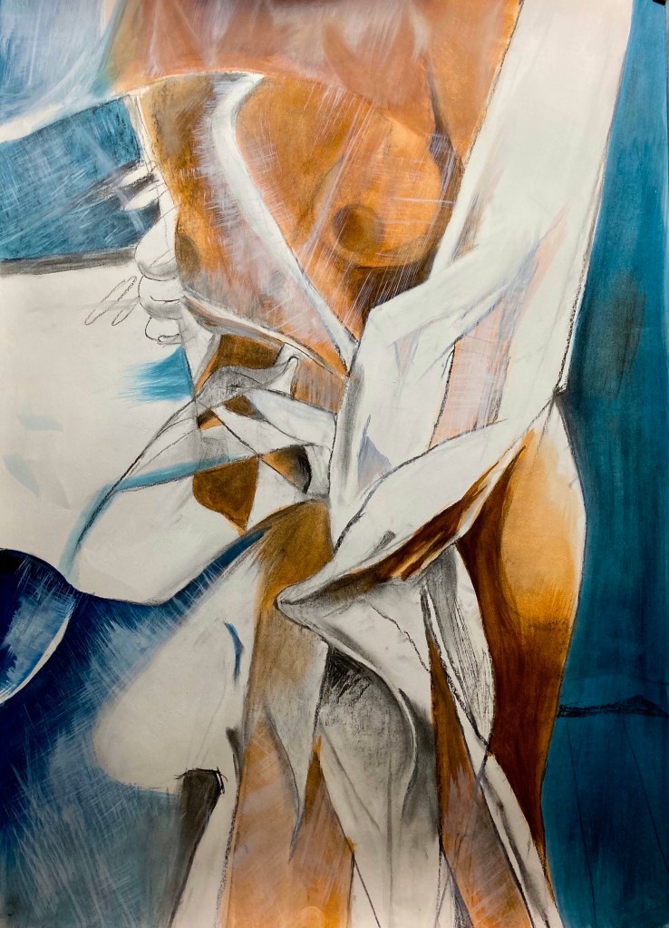 ‘Big Bottom Woman’, 2024 oil, oil pastel & collage on paper 100 x 70cm‘Vinyl Mask’, 2023. Oil on paper.59 x 42cm‘Wide Eyed’2023. Oil & charcoal on Snowdon paper. 100 x 70cm‘Hold’ 2023. Oil & charcoal on Snowdon paper. 100 x 70cm‘ Twist Me’ 2020. Oil & charcoal on Snowdon paper. 100 x 70cm‘Wrapped & Twisted’ 2020. Oil & charcoal on Snowdon paper. 100 x 70cm‘Black Wedding Dress’ study,2020. Oil & charcoal on Snowdon paper. 100 x 70cm‘Big Twist’,2020. Oil & charcoal on Snowdon paper. 100 x 70cm‘Diagonal Clutch’ 2020. Oil & charcoal on Snowdon paper. 70 x 100cm‘I’m Staying Here’, 2024. Oil, oil pastel & collage on paper 100 x 70cm‘It Won’t Be Long’, 2023 OIl on paper.